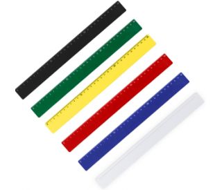 Descrição: Régua plástica colorida de 30 cm com verso liso, apenas na cor branca possui detalhe em relevo no verso.