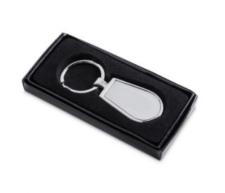 Descrição: Chaveiro de metal formato gota com chapa central, verso liso.