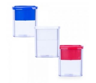Descrição: Porta caneta plástico com porta clips. "Copo" plástico resistente com parte interna colorida removível, tem duas separações para canetas e separação designada para clips.