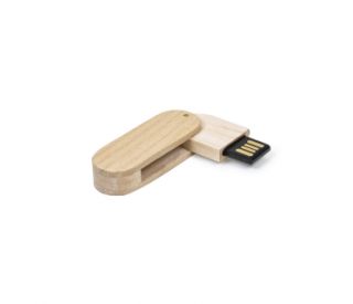 Descrição: Pen Drive 4GB giratório oval de bambu, frente e verso lisos.