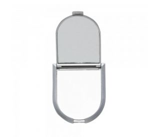 Descrição: Espelho duplo plástico em formato escudo, com aumento.
