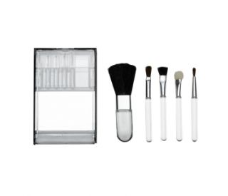 Descrição: Kit pincel 5 peças em estojo plástico com visor transparente. Parte interna acompanha um espelho, compartimento dos pincéis é inclinável. Possui: pincel para blush, pincel para corretivo, pincel para sombra, pincel para lábios e pinc