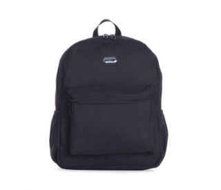 Descrição: Mochila de nylon com plaquinha para gravação. Compartimento grande com bolso interno para notebook de revestimento poliester e bolso frontal. Possui bolsos laterais, zíperes preto, alça superior de nylon, alças para costa ajustáveis