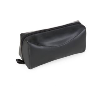 Descrição: Necessaire couro sintético bidins lisa com detalhe(corte) superior frente e verso, parte inferior com alças na lateral.