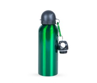 Descrição: Squeeze 500ml de alumínio com pintura metalizada, tampa rosqueável e acompanha um segundo bico com mosquetão (não é térmico).
