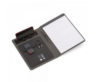 Descrição: Pasta convenção com carregador por indução. Capa confeccionada em poliéster, possui indutor de carga na capa (para usufruir do do carregador é necessário que o tablet ou smartphone tenha a tecnologia QI), parte interna com suporte p