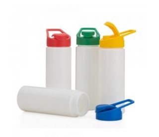 Descrição: Squeeze plástico 550ml com tampa plástica rosqueável, contém alça e tampa protetora para o bocal.
